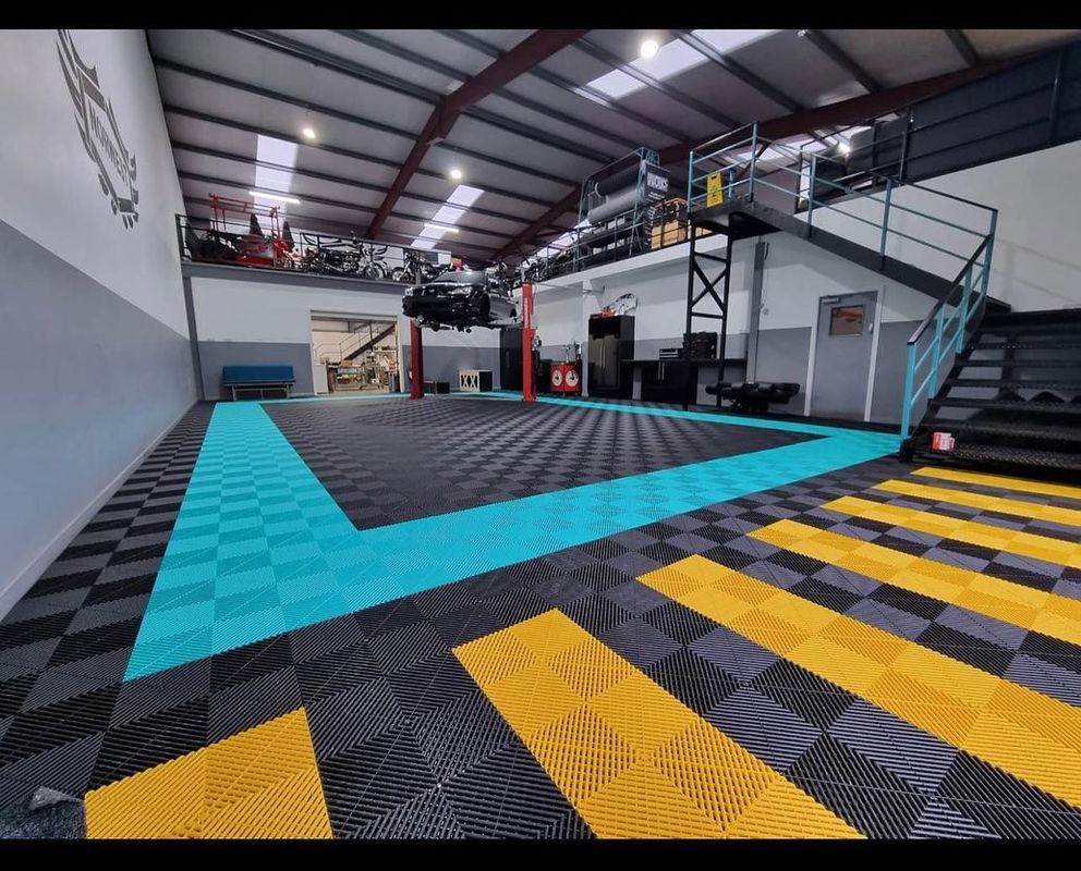 Perbaiki lantai garasi Anda dengan ubin lantai PP Garage, kombinasi sempurna antara fungsionalitas dan gaya.